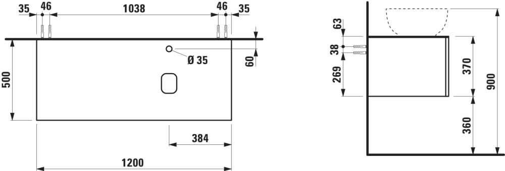 LAUFEN ILBAGNOALESSI Zásuvkový element 1200, s 1 zásuvkou, s výrezom vpravo, top Calce Avorio vr. otvoru pre batériu, pre umývadlo H818974, 1200x500x370 mm, Noce Canaletto – drevená dyha 630, H4313250976301