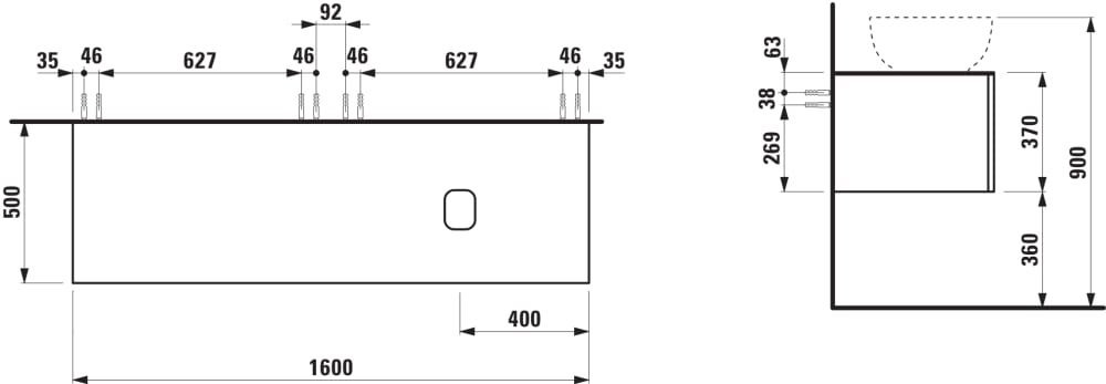 LAUFEN ILBAGNOALESSI Zásuvkový element 1600, s 2 zásuvkami, s výrezom vpravo, top Calce Avorio, pre umývadlo H818974, 1600x500x370 mm, Bledý dub 250, H4313430972501