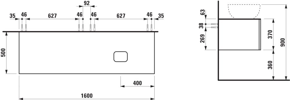 LAUFEN ILBAGNOALESSI Zásuvkový element 1600, s 2 zásuvkami, s výrezom vpravo, top Calce Avorio, pre umývadlo H818975/6, H818977/8, 1600x500x370 mm, Noce Canaletto – drevená dyha 630, H4313530976301