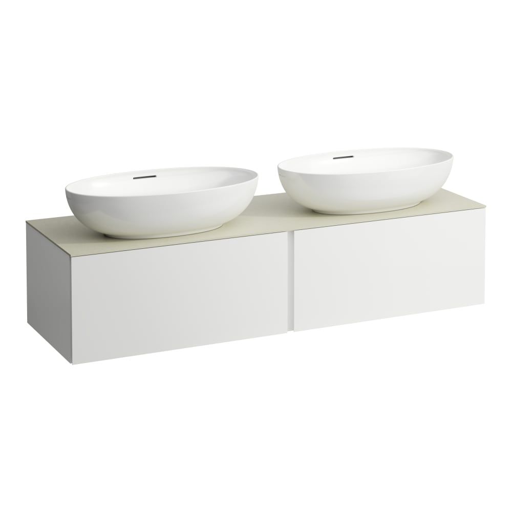 LAUFEN ILBAGNOALESSI Zásuvkový element 1600, s 2 zásuvkami, s výrezom vľavo a vpravo, top Calce Avorio vr. otvoru pre batériu, pre umývadlo H818975/6. H818977/8, 1600x500x370 mm, Biela matná 260, H4313570972601