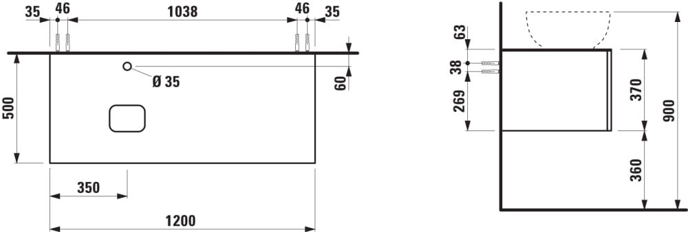 LAUFEN ILBAGNOALESSI Zásuvkový element 1200, s 1 zásuvkou, s výrezom vľavo, top Marrone Naturale vr. otvoru pre batériu, pre umývadlo H818977/8, 1200x500x370 mm, Špeciálne farby 990, H4323100979901