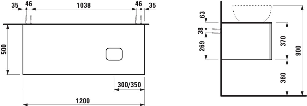 LAUFEN ILBAGNOALESSI Zásuvkový element 1200, s 1 zásuvkou, s výrezom vpravo, top Marrone Naturale, pre umývadlo H818975/6, H818977/8, 1200x500x370 mm, Biela matná 260, H4323130972601