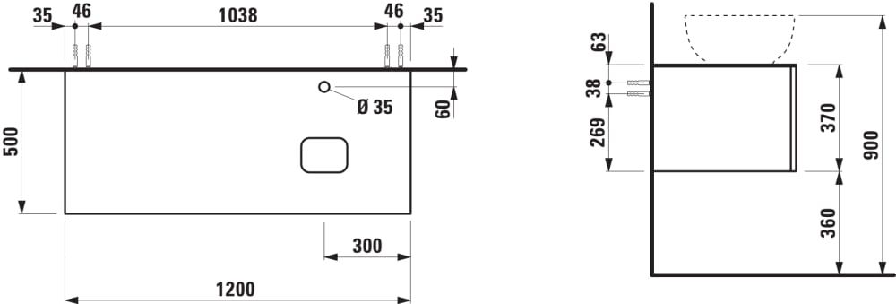 LAUFEN ILBAGNOALESSI Zásuvkový element 1200, s 1 zásuvkou, s výrezom vpravo, top Marrone Naturale vr. otvoru pre batériu, pre umývadlo H818975/6, 1200x500x370 mm, Biela matná 260, H4323170972601