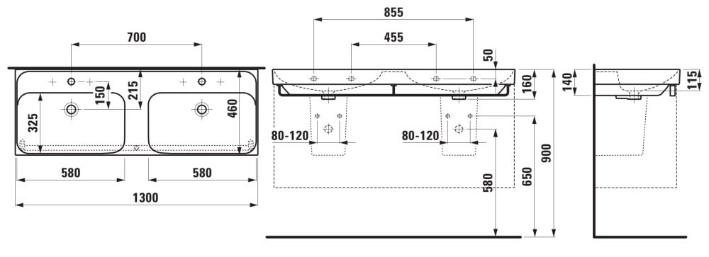 LAUFEN MEDA Dvojumývadlo s jedným otvorom pre batériu, bez prepadu, 1300x460 mm, farba Biela, H8141120001111 Čítať viac