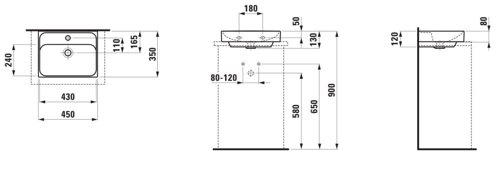 LAUFEN MEDA Umývátko, s armaturní deskou vpravo s jedným otvorom pre batériu uprostred s prepadom, 450x350 mm, farba Biela LCC, H8161114001041 Čítať viac