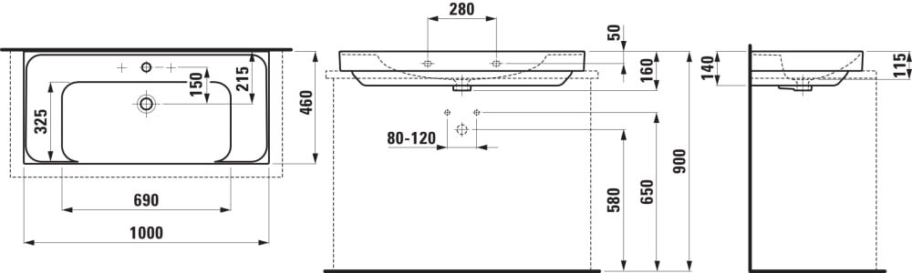 LAUFEN MEDA Umývadlo, odkladacia plocha vpravo a vľavo, brúsená spodná časť umývadla s jedným otvorom pre batériu, bez prepadu, 1000x460 mm, farba Biela matná, H8161197571111