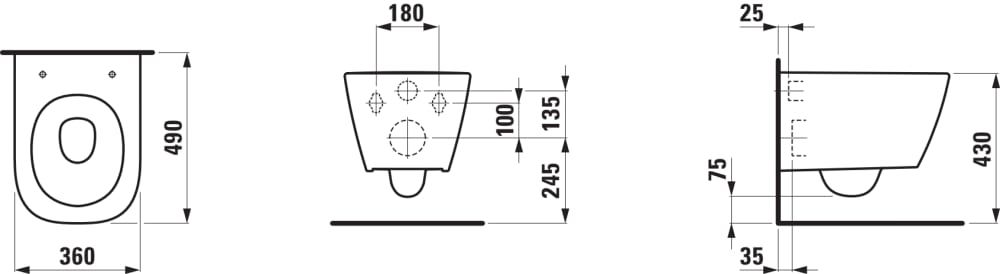 LAUFEN MEDA, Závesné WC 'Silent flush', Rimless, hlboké splachovanie, advanced, compact, Čierna matná 716, 490x360 mm, H8201137160001