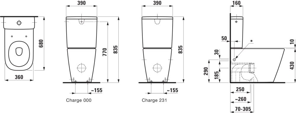 LAUFEN MEDA, WC kombi, 'Silent flush', Rimless, hlboké splachovanie, vodorovný/zvislý odpad Vario 70 - 305 mm, Biela 000, 680x360 mm, H8241110002311