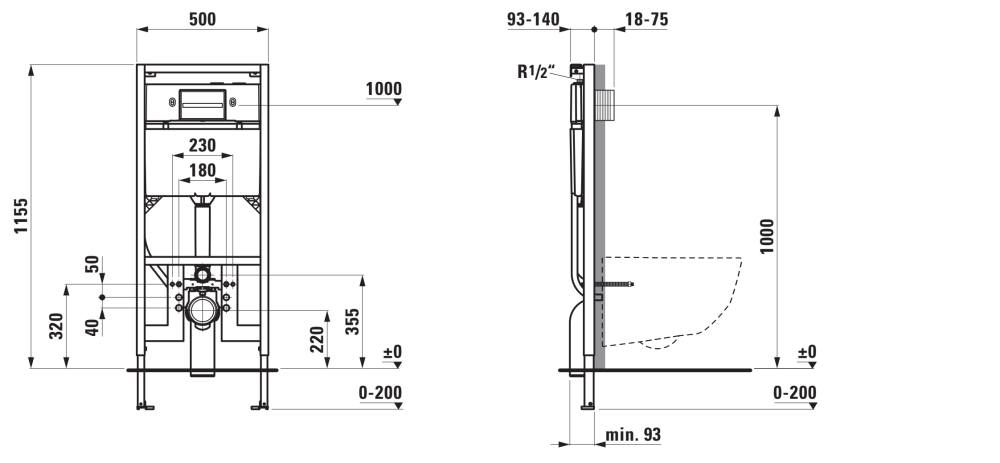 LAUFEN INEO Rámový podomietkový modul slim s kompaktnou nádržkou (90 mm), pre závesné WC a závesné WC so zabudovanou bidetovou tryskou, so zabudovanou hadičkou pre prívod vody, H9201100000001