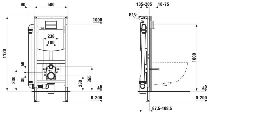 LAUFEN INEO Rámový podomietkový modul pre závesné WC, s ventilom pre prívod vzduchu, do ľahkej steny , H9201160000001