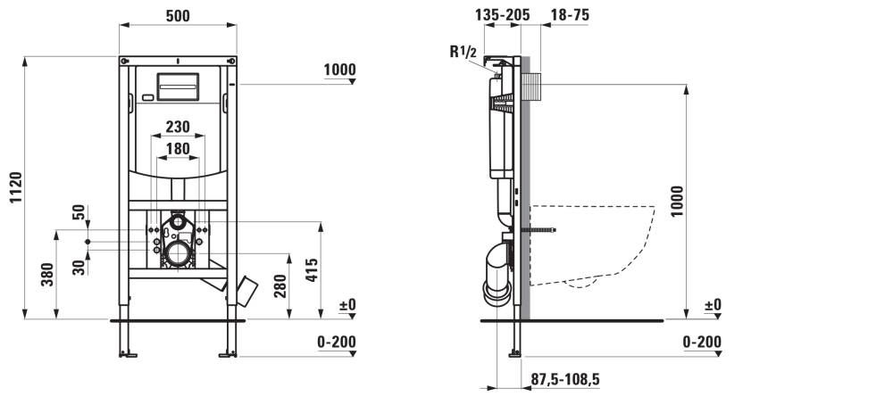LAUFEN INEO Rámový podomietkový modul pre závesné WC, s nastaviteľnou sedacou výškou +50mm, do ľahkej steny, H9201170000001