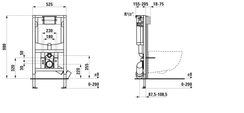 LAUFEN INEO Rámový podomietkový modul, pre závesné WC, podokenná stavebná výška 98 cm, ovládanie splachovacieho tlačidla spredu alebo zhora, do ľahkej priečky, Dual Flush 6/3 l, nastaviteľné aj na 4,5/3 l, s nádržkou proti oroseniu, H9271040000001