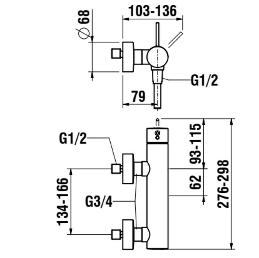 LAUFEN TWINPLUS SLIM Sprchová nástenná páková batéria, so sprchovou hadicou 1500 mm a ručnou sprchou MyTwin100, Chróm 100, HF505450100600
