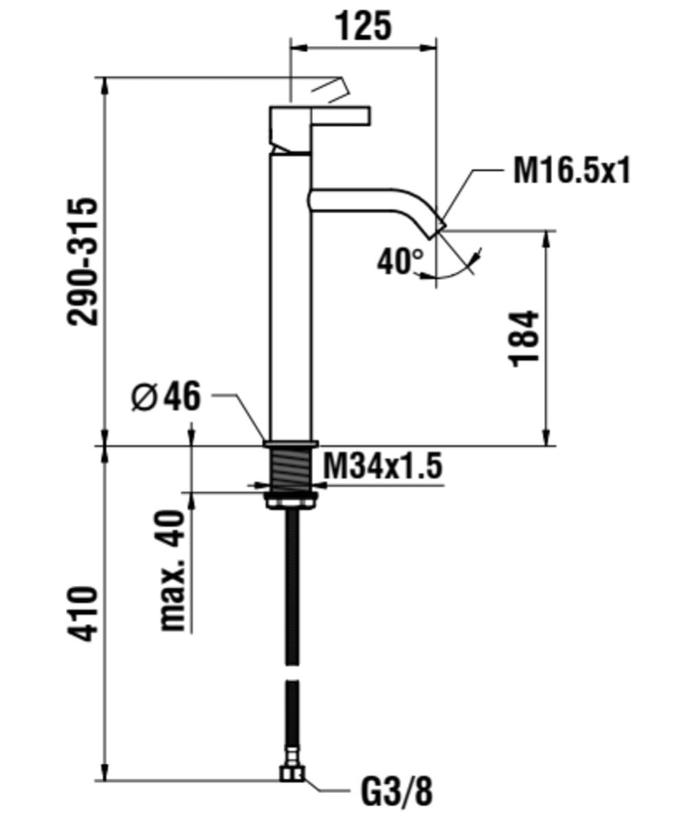 LAUFEN Kartell LAUFEN Stĺpová umývadlová batéria, pevný výtok, 125 mm, bez automatickej výpuste, PVD kartáčovaná nerezová oceľ 090, H3113380901201