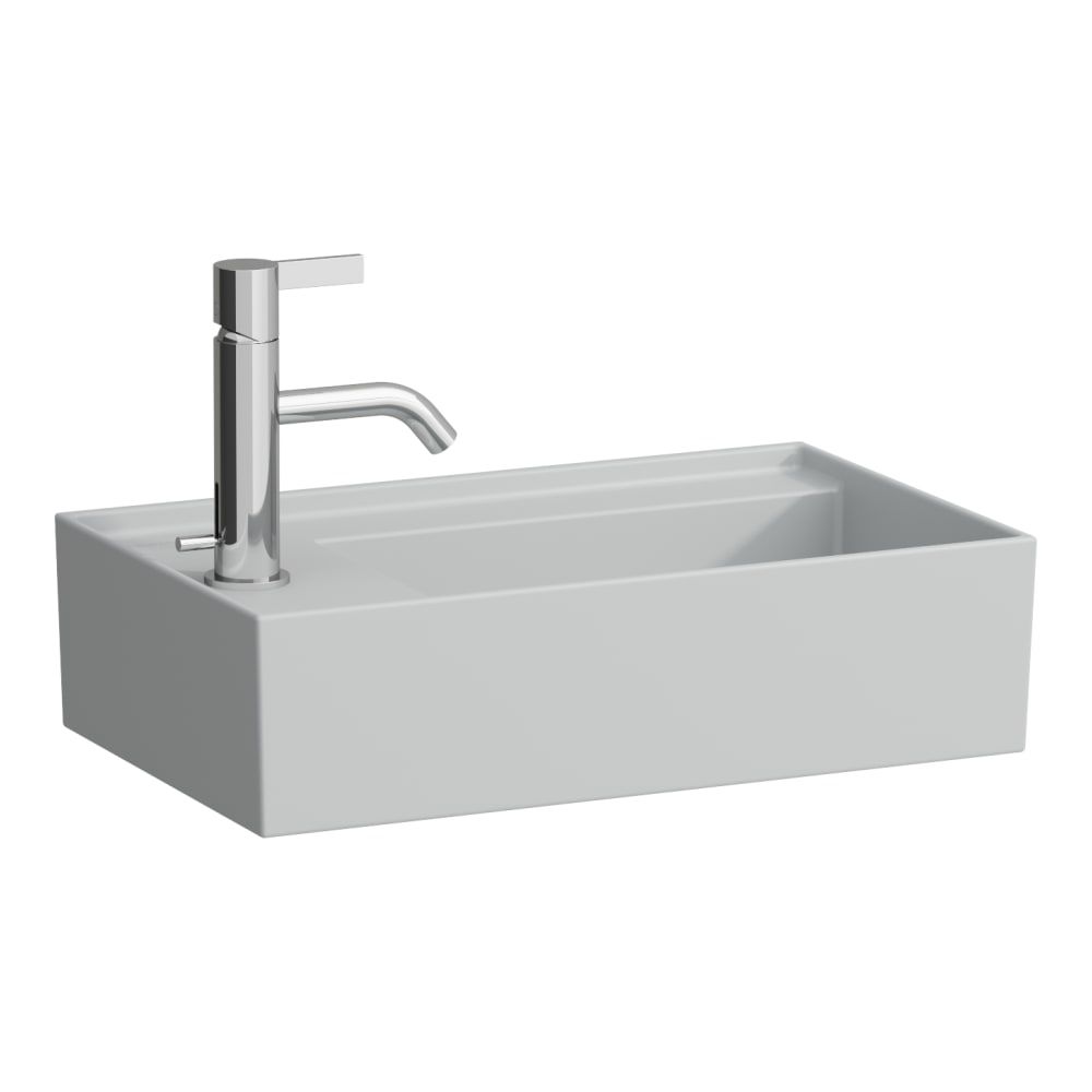 LAUFEN Kartell LAUFEN Umývadielko so skrytým odpadom, polička vľavo s jedným otvorom pre batériu, bez prepadu, SaphirKeramik, 460x280 mm, farba Šedá mat, H8153357591111