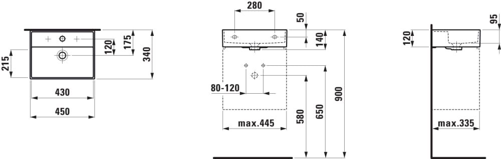 LAUFEN Kartell LAUFEN Umývadlo bez otvoru pre batériu, bez prepadu, 450x340 mm, farba Biela LCC, H8153304001121