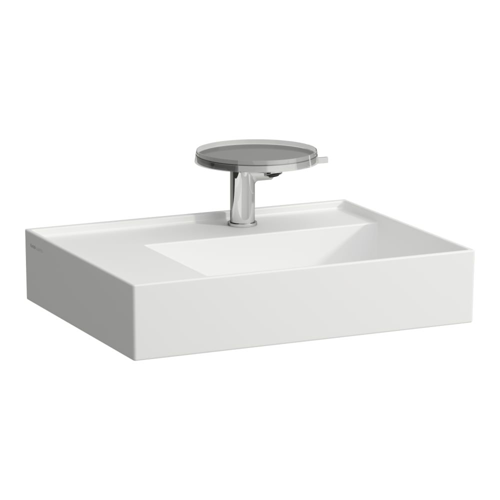 LAUFEN Kartell LAUFEN Umývadlo so skrytým odpadom, odkladacia plocha vľavo, brúsená spodná časť s jedným otvorom pre batériu, bez prepadu, SaphirKeramik, 600x460 mm, farba Biela matná, H8183357571111