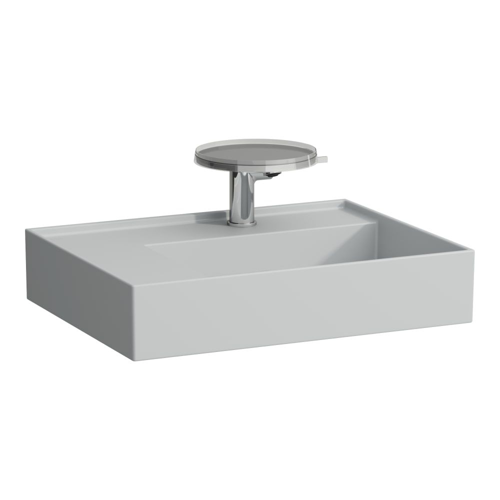LAUFEN Kartell LAUFEN Umývadlo so skrytým odpadom, odkladacia plocha vľavo, brúsená spodná časť s jedným otvorom pre batériu, bez prepadu, SaphirKeramik, 600x460 mm, farba Šedá mat, H8183357591111