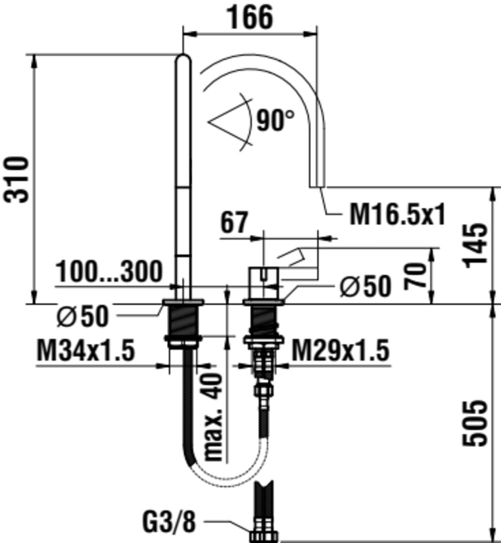 LAUFEN Kartell LAUFEN Umývadlová dvojotvorová stojančeková batéria, otočný výtok 166 mm, prietok 5,3 l/min, bez automatického výpustu, PVD Svetlozlatá matná 083, H3113320832201