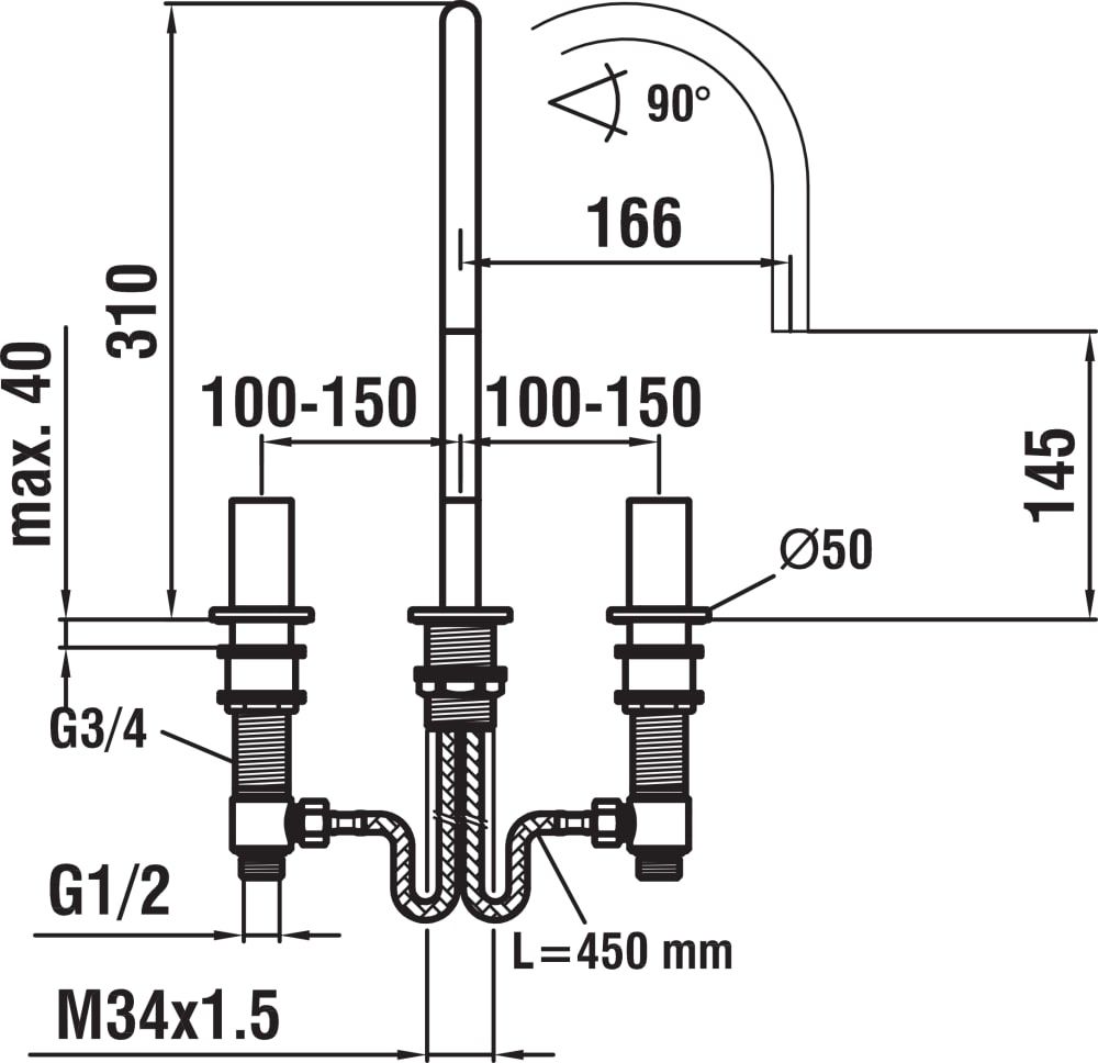LAUFEN Kartell LAUFEN Umývadlová trojotvorová stojančeková batéria, otočný výtok 165 mm, prietok 5,7 l/min, bez automatického výpustu, PVD Titán čierný matný 081, H3123330812201