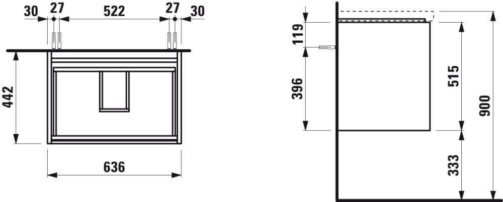 LAUFEN LANI Skrinka pod umývadlo, s 2 zásuvkami, pre umývadlo H810084, 635x450x515 mm, Šedá traffic 266, H4035421122661