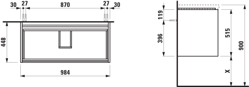 LAUFEN LANI Skrinka pod umývadlo, s 2 zásuvkami, pre umývadlo H810089, H818437, H810337, 985x450x515 mm, Špeciálne farby 990, H4035621129901