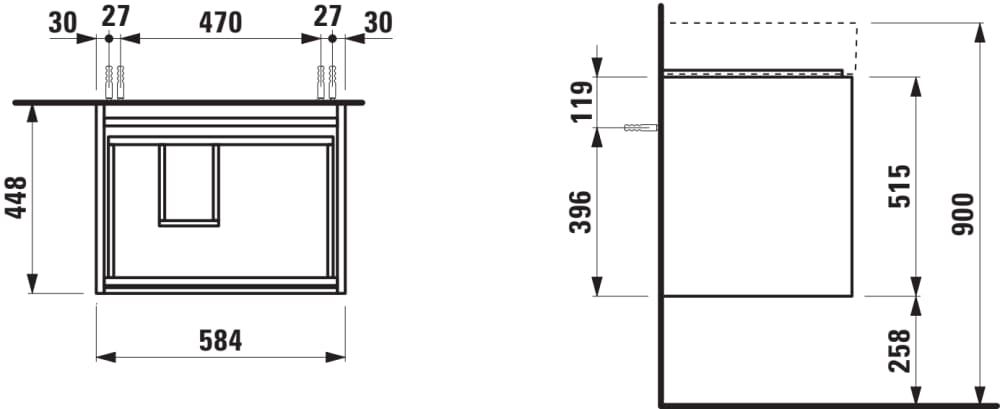 LAUFEN LANI Skrinka pod umývadlo, s 2 zásuvkami, pre umývadlo H810334, 585x450x515 mm, Špeciálne farby 990, H4039321129901