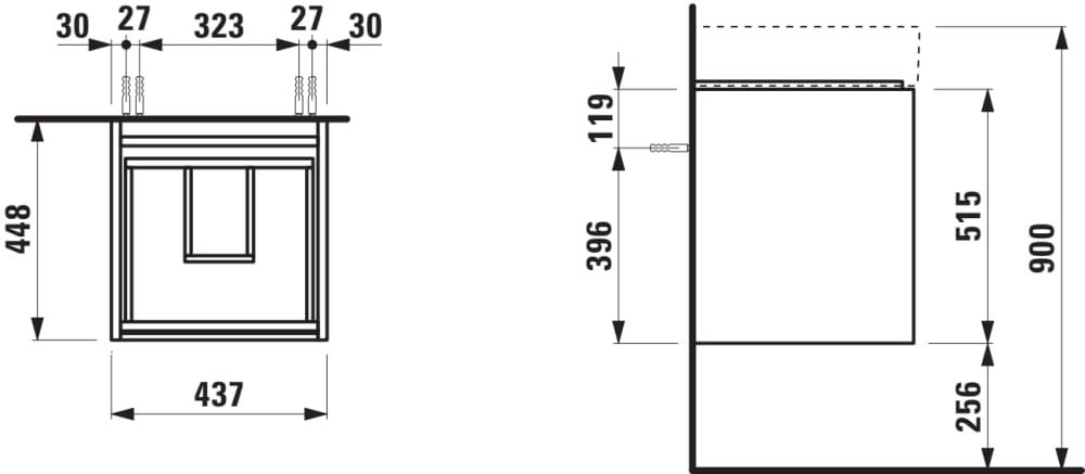 LAUFEN LANI Skrinka pod umývadlo, s 2 zásuvkami, pre umývadlo H815331, 435x450x515 mm, Šedá traffic 266, H4039221122661