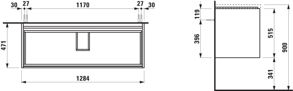 LAUFEN LANI Skrinka pod umývadlo, s 2 zásuvkami, pre umývadlo H816435, 1285x470x515 mm, Biela lesklá 261, H4041921122611