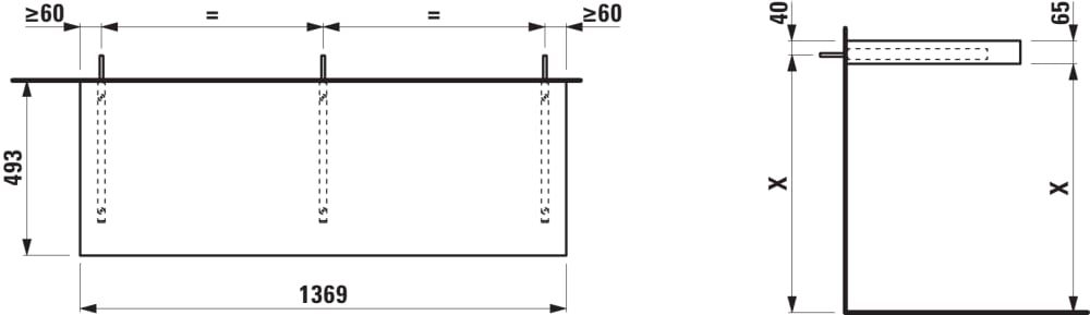 LAUFEN LANI Umývadlová doska 1400, bez výrezu, hrúbka: 65 mm, vr. 3 nástenných držiakov, 1370x495x65 mm, Divoký dub 267, H4046801122671