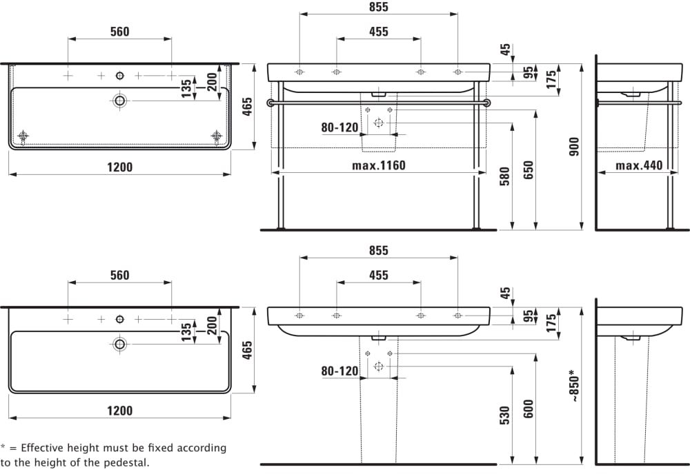 LAUFEN LAUFEN PRO S Dvojumývadlo do nábytku s dvoma otvormi pre dve batérie s prepadom, 1200x465 mm, farba Biela, H8149650001071
