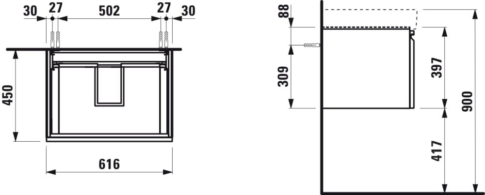 LAUFEN LAUFEN PRO S Skrinka pod umývadlo 810964 so zásuvkou a vnútornou zásuvkou, 615x450x390 mm, Biela 475, H4834220964751