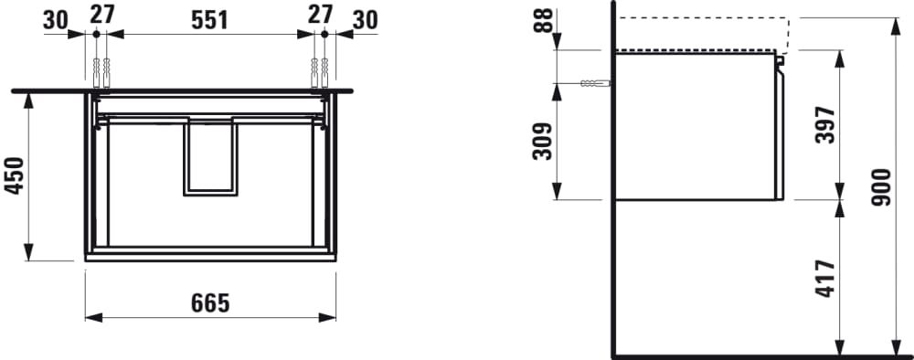LAUFEN LAUFEN PRO S Skrinka pod umývadlo 810967 so zásuvkou, 665x450x390 mm, Biela 475, H4834510964751