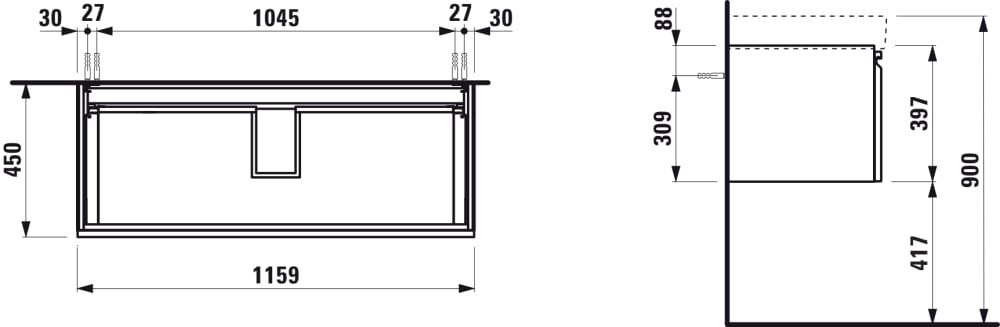 LAUFEN LAUFEN PRO S Skrinka pod umývadlo, pre 814965 so zásuvkou a vnútornou zásuvkou, 1160x450x395 mm, Biela lesklá 479, H4835620964791