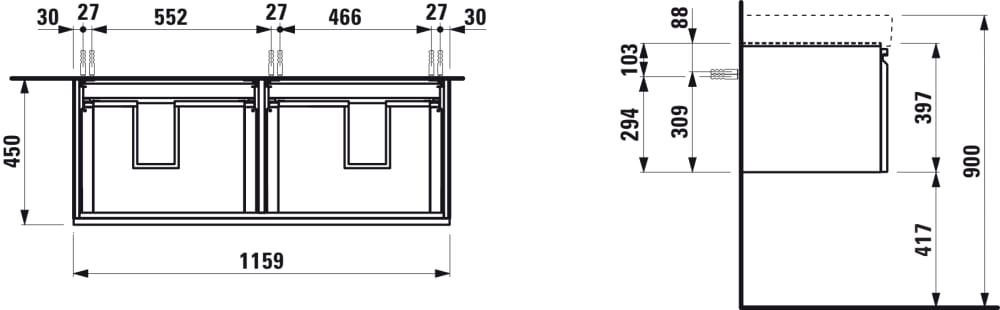 LAUFEN LAUFEN PRO S Skrinka pod umývadlo, pre 814966 so 2 zásuvkami (vľavo a vpravo), 1160x450x395 mm, Multicolour farby 999, H4835630969991