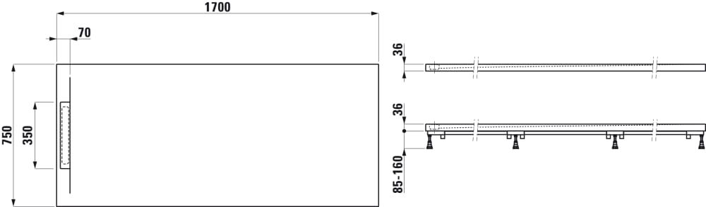 LAUFEN LAUFEN PRO S Sprchová vanička, obdĺžniková, s lineárnym odtokom na kratšej strane, Marbond, 1700x750x36 mm, Biela 000, H2111860000001