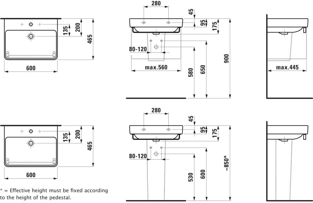 LAUFEN LAUFEN PRO S Umývadlo s jedným otvrom pre batériu, bez prepadu a bez otvoru v odtokovom ventile, 600x465 mm, farba Biela, H8109630001561