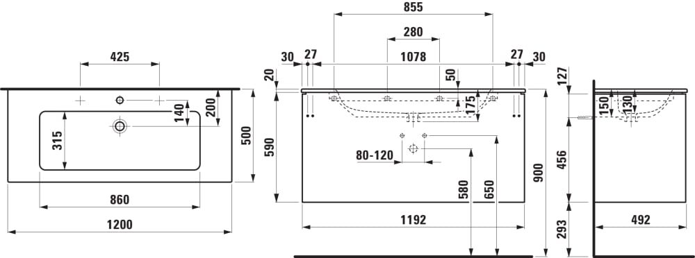 LAUFEN LAUFEN PRO S Umývadlo slim so skrinkou 120 cm, s 2 zásuvkami, vr. deliaceho systému do zásuviek, 1200x500x610 mm, Tmavohnedý brest 263, H8649632631071 Čítať viac