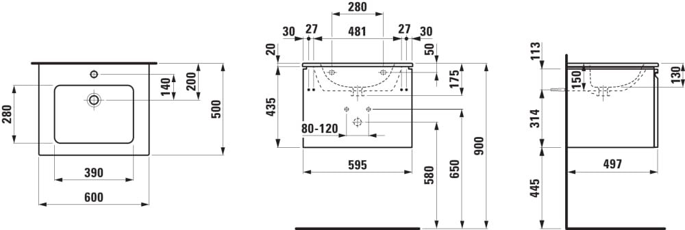 LAUFEN LAUFEN PRO S Umývadlo so skrinkou so zásuvkou, 600x500x460 mm, Biela 463, H8609614631041 Čítať viac