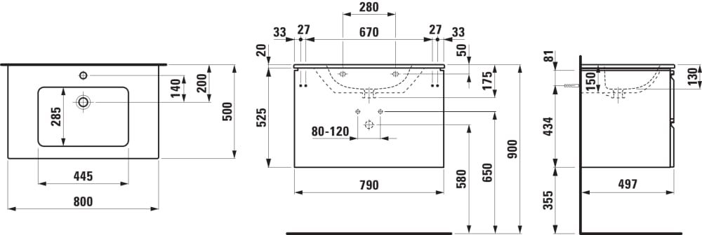 LAUFEN LAUFEN PRO S Umývadlo so skrinkou, 800x500x545 mm, Wenge 423, H8619634231041 Čítať viac