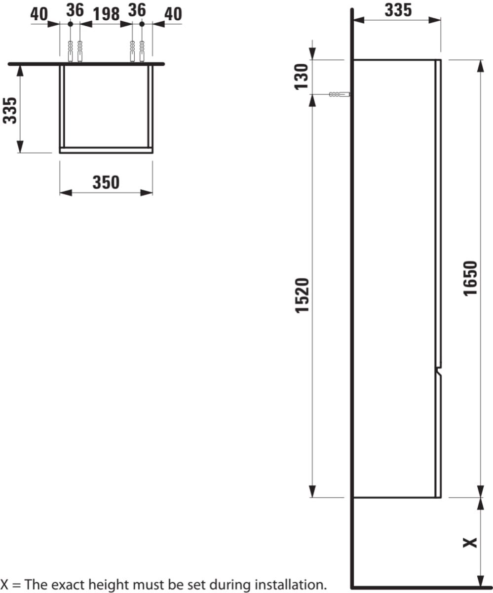 LAUFEN LAUFEN PRO S Vysoká skrinka so 4 poličkami, závesy dverí vľavo, 350x335x1650 mm, Biela 463, H4831210954631