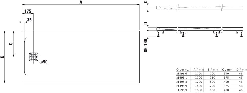 LAUFEN LAUFEN PRO Sprchová vanička, obdĺžniková, s odtokom na kratšej strane, Marbond, 1700x700x46 mm, Antracit 078, H2159560780001
