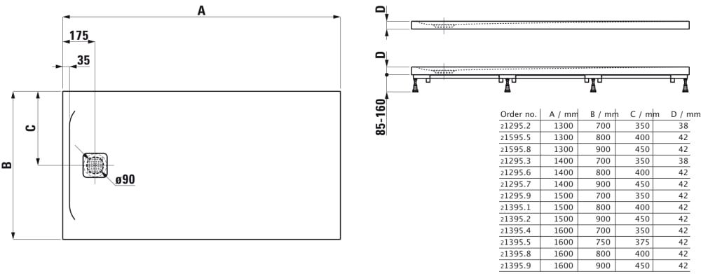 LAUFEN LAUFEN PRO Sprchová vanička, obdĺžniková, s odtokom na kratšej strane, Marbond, 1300x900x42 mm, Biela 000, H2159580000001
