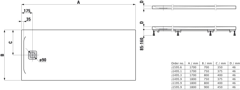LAUFEN LAUFEN PRO Sprchová vanička, obdĺžniková, s odtokom na kratšej strane, Marbond, 1700x750x46 mm, Čierna 080, H2149510800001