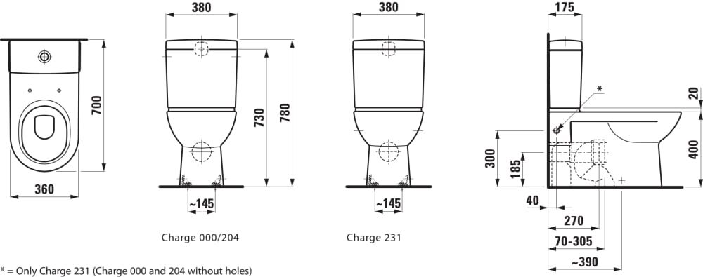 LAUFEN LAUFEN PRO, WC kombi, hlboké splachovanie, VARIO odpad, vrátane inštalačnej sady, Biela 000, 700x360 mm, H8249580000001
