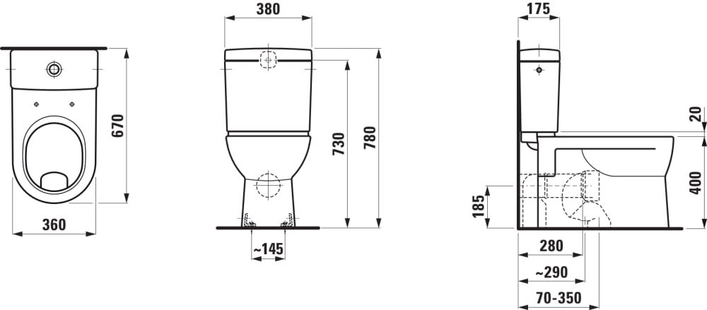 LAUFEN LAUFEN PRO, WC kombi, ploché splachovanie, VARIO odpad, vrátane inštalačnej sady, Biela LCC 400, 670x360 mm, H8249594000001