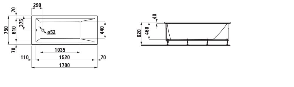 LAUFEN LAUFEN PRO Vaňa s konštrukciou a L-panelom ľavým, objem 185 l, 1700x750x620 mm, H2319550006351