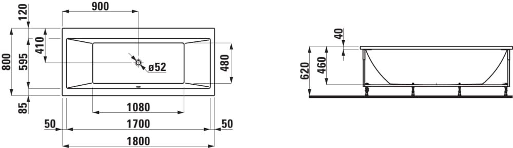 LAUFEN LAUFEN PRO Vaňa s konštrukciou a L-panelom ľavým, objem 225 l, 1800x800x620 mm, H2329550006751