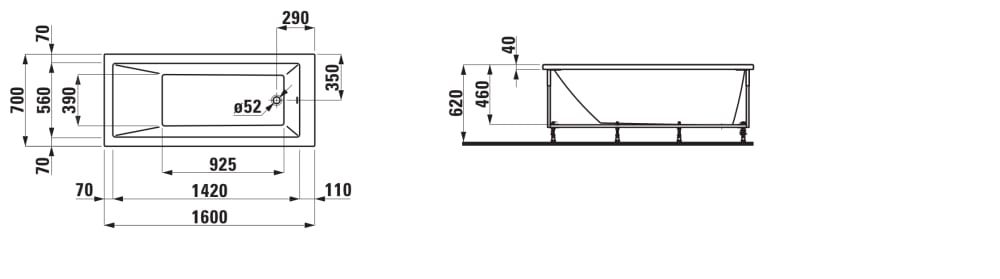 LAUFEN LAUFEN PRO Vaňa s konštrukciou a L-panelom pravým, objem 125 l, 1600x700x620 mm, H2339560006051
