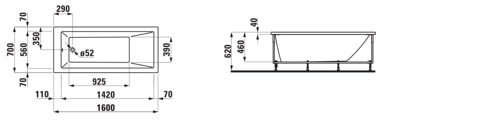 LAUFEN LAUFEN PRO Vaňa, s konštrukciou, objem 125 l, 1600x700x620 mm, H2339510006051